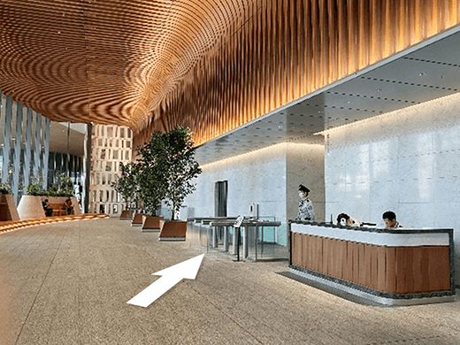 2一番右側の低層階EVのセキュリティゲートを通りEV手前のボタンで9階を押す -